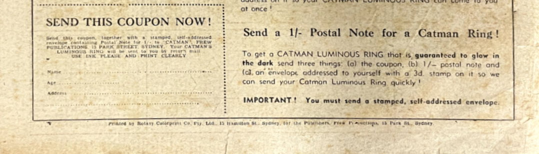 Printed by Rotary Colorprint Co. Pty. Ltd., 15 Hamilton St., Sydney, for the Publisers, Frew Productions, 15 Park St., Sydney.