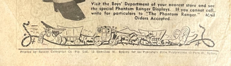 Printed by Rotary Colorprint Co. Pty. Ltd., 15 Hamilton St., Sydney, for the Publishers Frew Publications, 15 Park St., Sydney.