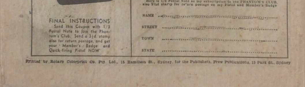 Printed by Rotary Colorprint Co. Pty. Ltd., 15 Hamilton St., Sydney, for the Publishers, Frew Publications, 15 Park St., Sydney.