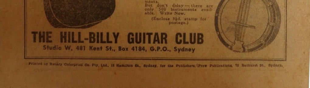 Printed by Rotary Colorprint Co. Pty. Ltd., 15 Hamilton St., Sydney, for the publishers, Frew Publications, 79 Bathurst St., Sydney.