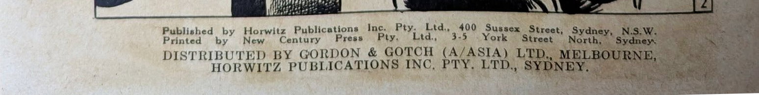 Published by Horwitz Publications Inc. Pty. Ltd., 400 Sussex Street, Sydney, N.S.w. Printed by New Century Press Pty. Ltd., 3-5 York Street North, Sydney. Distributed by Gordon & Gotch (A/asia) Ltd., Melbourne, Horwitz Publications Inc. Pty. Ltd., Sydney.