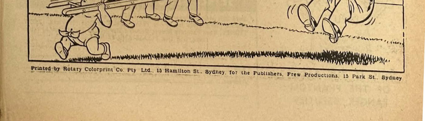 Printed by Rotary Colorprint Co. Pty. Ltd, 15 Hamilton St., Sydney, for the Publishers, Frew Productions, 15 Park St., Sydney.