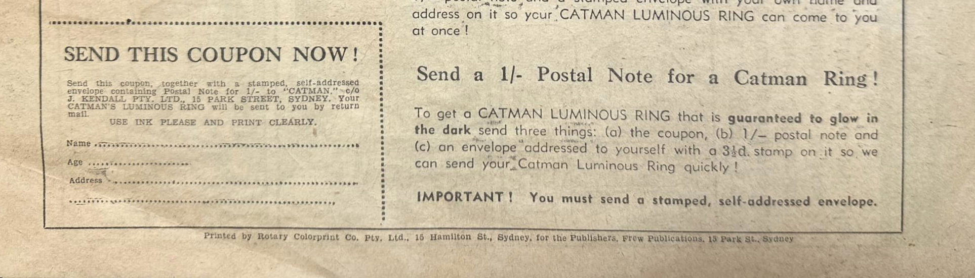 Printed by Rotary Colorprint Co. Pty. Ltd., 15 Hamilton St., Sydney, for the Publishers, Frew Publications, 15 Park St. Sydney.
