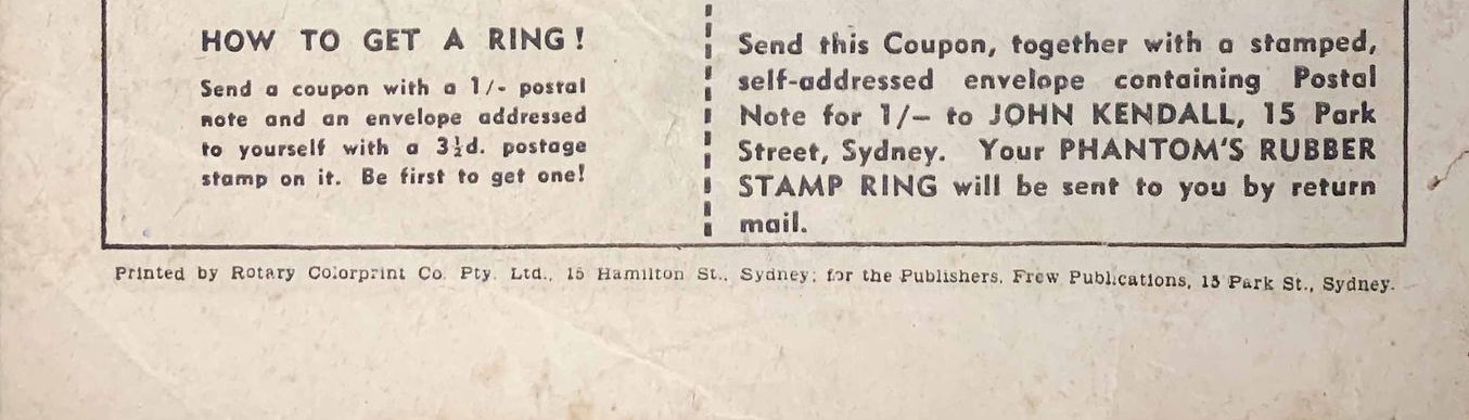 Printed by Rotary Colorprint Co. Pty. Ltd., 15 Hamilton St., Sydney, for the Publishers Frew Publications, 15 Park St., Sydney.