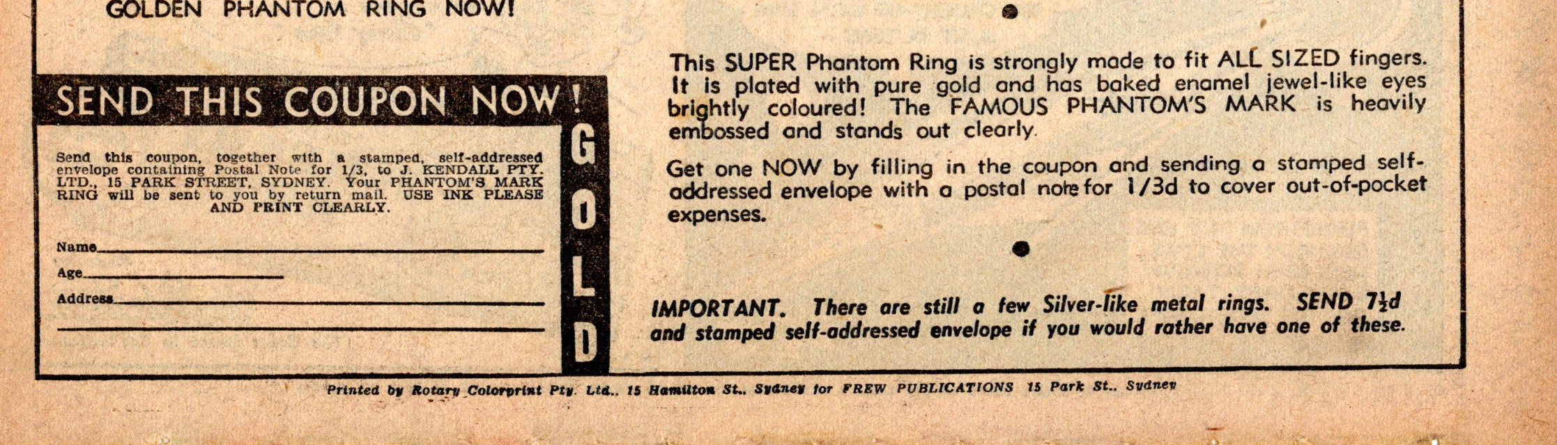 Printed by Rotary Colorprint Pty. Ltd., 15 Hamilton St., Sydney for Frew Publications, 15 Park St., Sydney.