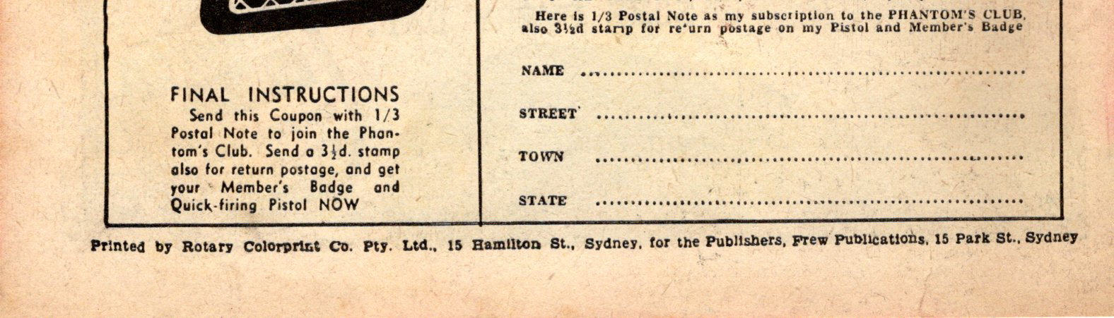 This issue's dating based on other occurrances of the 'Phantom's Anti-Crime Club' advertisement in early 1952.