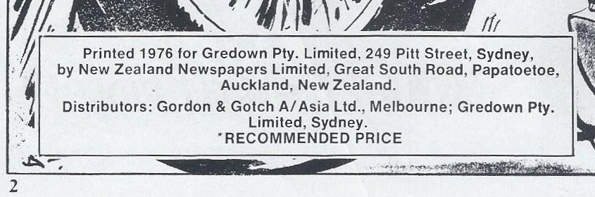 Printed 1976 for Gredown Pty. Limited, 249 Pitt Street, Sydney. By New Zealand Newspapers Limited, Great South Road, Papatoeto, Auckland, New Zealand. Distributors: Gordon & Gotch A/Asia Ltd., Melbourne; Gredown Pty. Limited, Sydney.