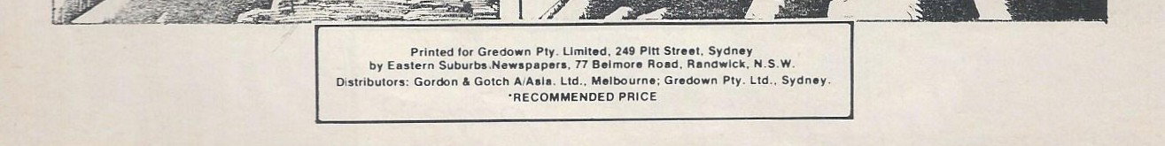 Printed for Gredown Pty. Limited, 249 Pitt Street, Sydney by Eastern Suburbes Newspapers, 77 Belmore Road, Randwick, N.S.W. Distributors: Gordon & Gotch A/Asia. Ltd., Melbourne; Gredown Pty. Ltd., Sydney.