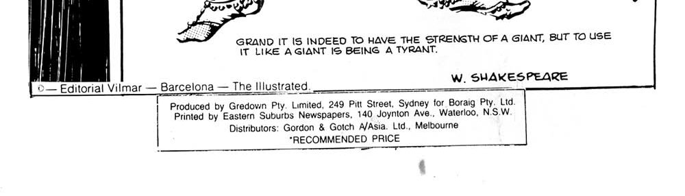 Produced by Gredown Pty. Limited, 249 Pitt Street, Sydney for Boraig Pty. Ltd. Printed by Eastern Suburbs Newspapers. 140 Joynton Ave., Waterloo. N.S.W. Distributors: Gordon & Gotch A/Asia. Ltd., Melbourne.