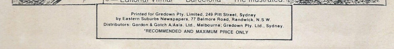 Printed for Gredown Pty. Limited, 249 Pitt Street, Sydney by Eastern Suburbs Newspapers, 77 Belmore Road, Randwick, N.S.W. Distributors: Gordon & Gotch A/Asia, Ltd., Melbourne; Gredown Pty. Ltd., Sydney.