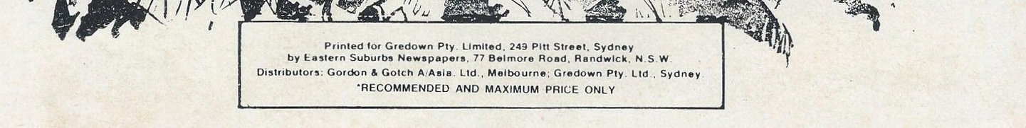 Printed for Gredown Pty. Limited, 249 Pitt Street, Sydney by Eastern Suburbs Newspapers, 77 Belmore road, Randwick, N.S.W. Distributors: Gordon & Gotch A/Asia. Ltd., Melbourne; Gredown Pty. Ltd., Sydney.