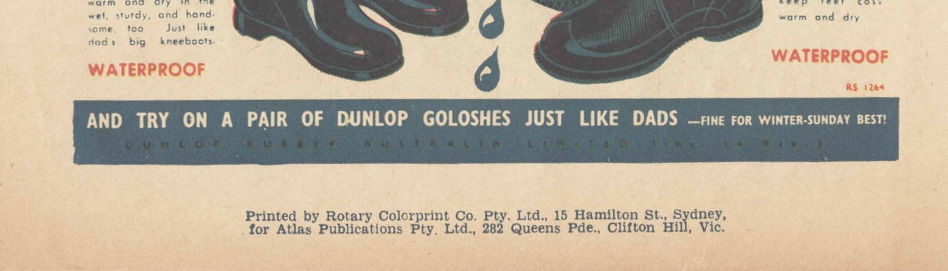 Printed by Rotary Colorprint Co. Pty. Ltd., 15 Hamilton St., Sydney, for Atlas Publications Pty. Ltd., 282 Queens Pde., Clifton Hill, Vic.