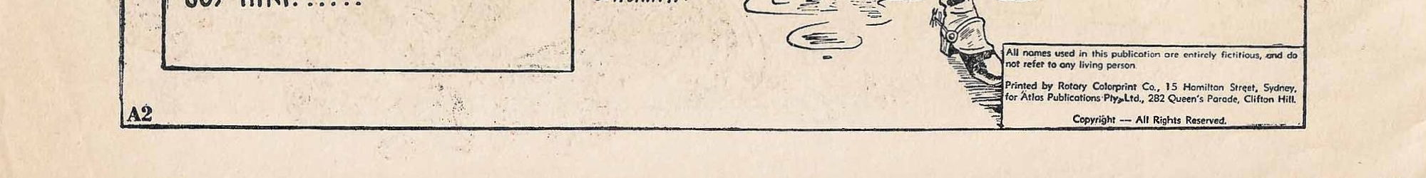Printed by Rotary Colorprint Co., 15 Hamilton Street, Sydney, for Atlas Publications Pty., ltd., 282 Queen's Parade, Clifton Hill. Copyright -- All rights reserved.