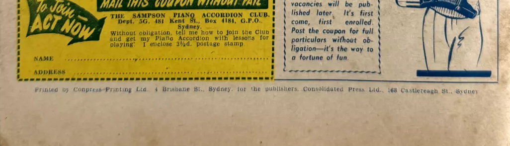 Printed by Conpress Printing Ltd. 4 Brisbane St., Sydney, for the publishers Consolidated Press Ltd., 168 Castlereagh St., Sydney.