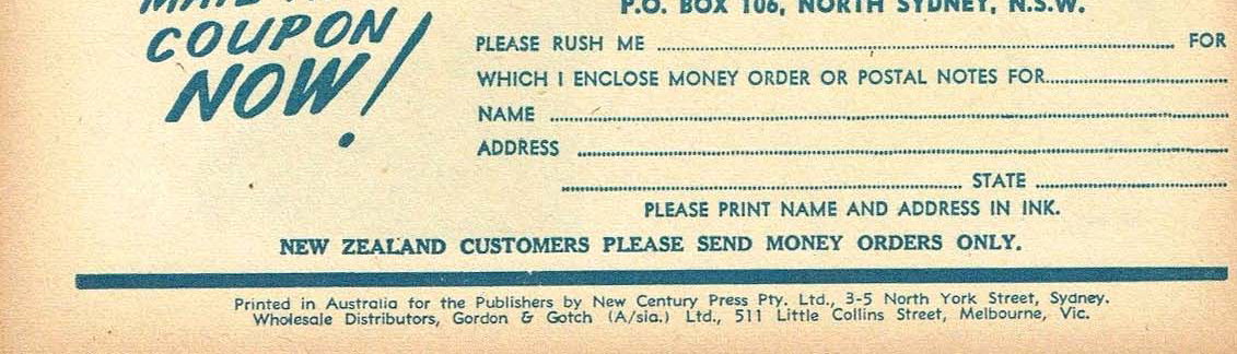 Printed in Australia for the Publishers by New Century Press Pty. Ltd., 3-5 North York Street, Sydney. Wholesale Distributors, Gordon & Gotch (A/sia) Ltd., 511 Little Collins Street, Melbourne, Vic.