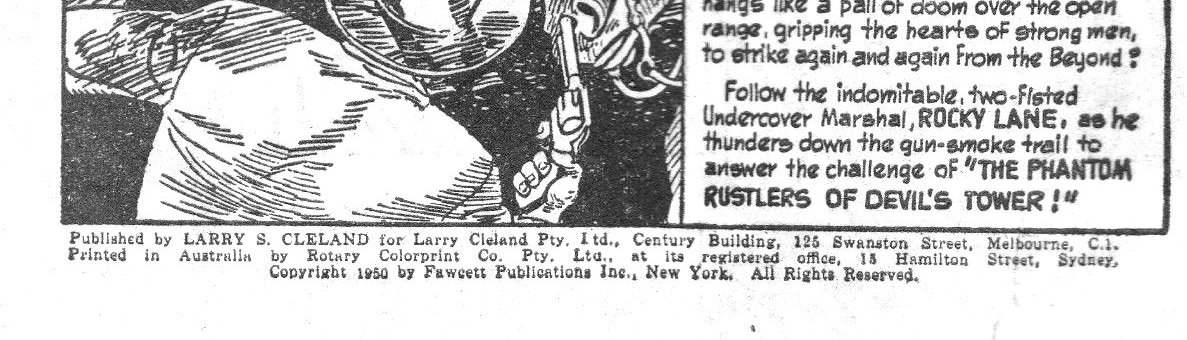 Published by Larry S. Cleland for Larry Cleland Pty. Ltd., Century Building, 125 Swanston Street, Melbourne, C.1. Printed in Australia by Rotary Colorprint Co. Pty. Ltd., at its registered office, 15 Hamilton Street, Sydney. Copyright 1950 by Fawcett Publications Inc., New York. All rights reserved.
