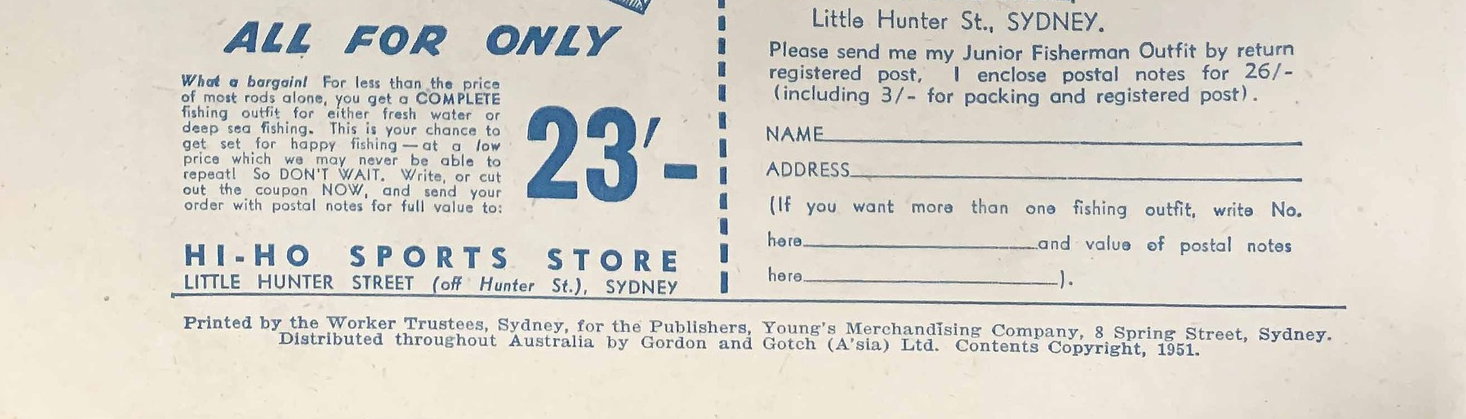 Printed by the Worker Trustees, Sydney, for the Publishers, Young's Merchandising Company, 8 Spring Street, Sydney. Distributed throughout Australia by Gordon and Gotch (A'sia) Ltd. Contents Copyright, 1951.