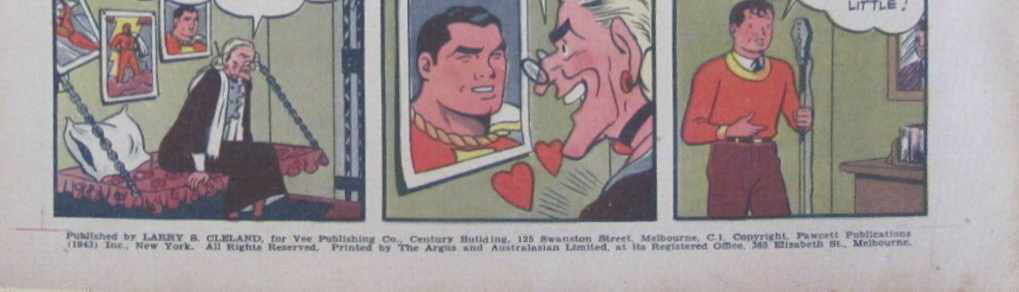 Published by Larry S. Cleland, for Vee Publishing Co., Century Building, 125 Swanston Street, Melbourne, C.1. Copyright. Fawcett Publications (1943) Inc., New York. All Rights Reserved. Printed by The Argus and Australasian Limited, at its Registered Office, 365 Elizabeth St, Melbourne.