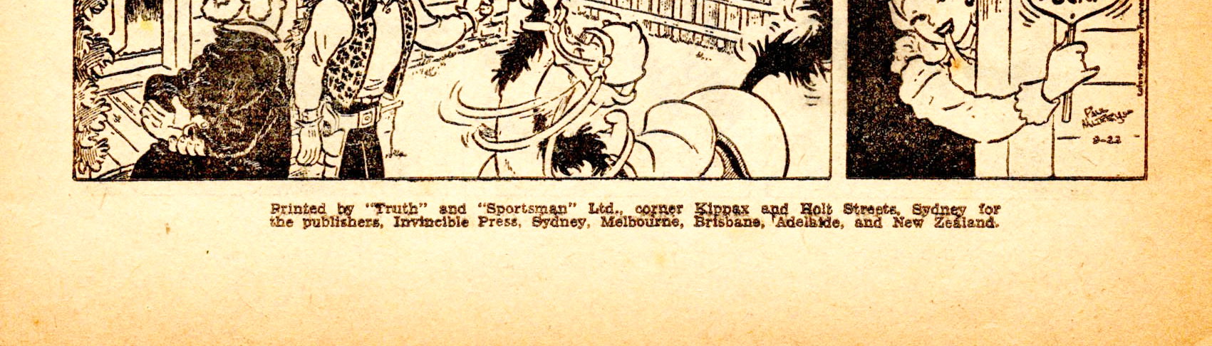 Printed by "Truth" and "Sportsman" Ltd., corner Kippax and Holt Streets, Sydney for the publishers, Invincible Press, Sydney, Melbourne, Brisbane, Adelaide, and New Zealand.