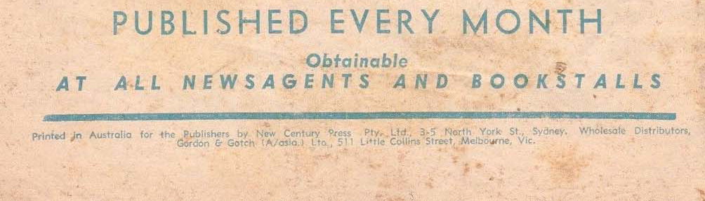 Printed in Australia for the Publishers by New Century Press Pty. Ltd., 3-5 North York St., Sydney. Wholesale Distributors: Gordon & Gotch (A/asia) Ltd., 511 Little Collins Street, Melbourne, Vic.