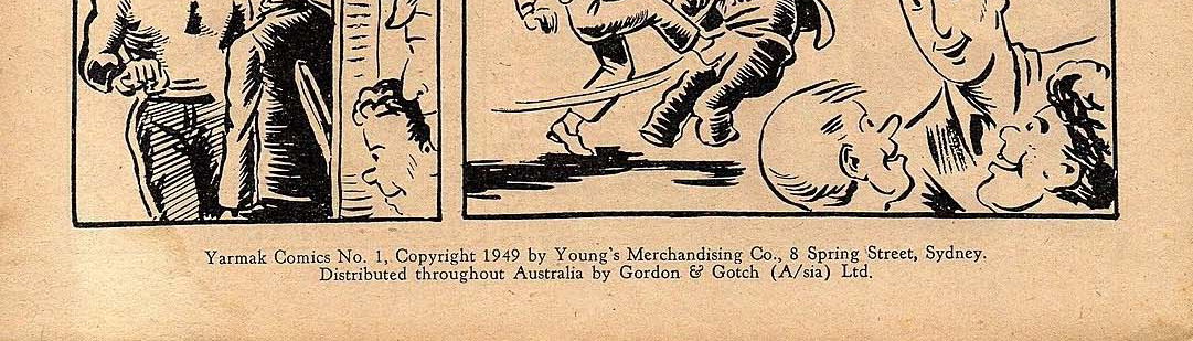Yarmak Comics No. 1. Copyright 1949 by Young's Merchandising Co., 8 Spring Street, Sydney. Distributed throughout Australia by Gordon & Gotch (A/sia) Ltd.