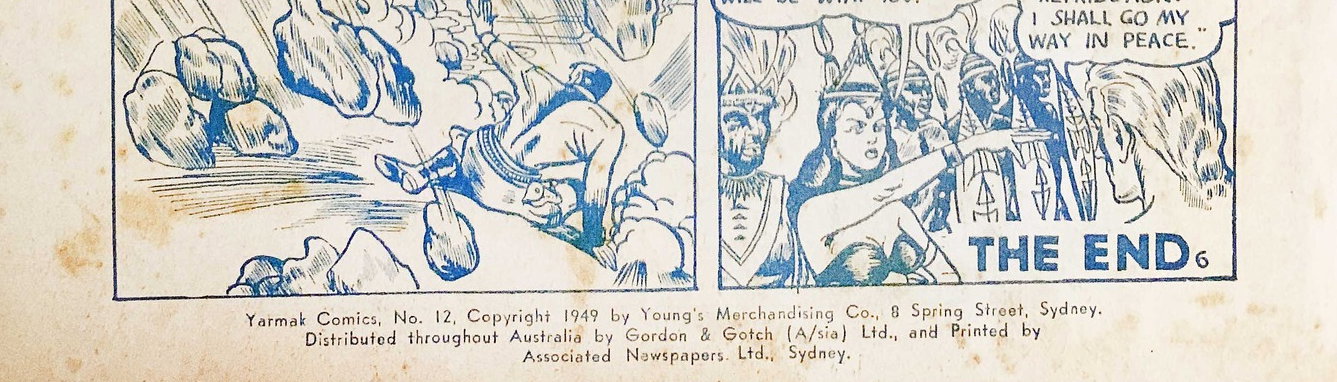 Yarmak Comics, No. 12, copyright 1949 by Young's Merchandising Co. 8 Spring Street, Sydney. Distributed throughout Australia by Gordon & Gotch (A/sia) Ltd., and printed by Associated Newspapers Ltd., Sydney.