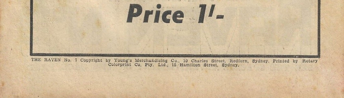 The Raven No. 7 Copyright by Young's Merchandising Co., 10 Charles Street, Redfern, Sydney. Printed by Rotary Colorprint Co. Pty. Ltd., 15 Hamilton Street, Sydney.