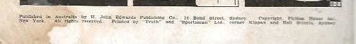 Published in Australia by H. John Edwards Publishing Co., 14 Bond Street, Sydney. Copyright Fiction House Inc. New York. All rights reserved. Printed by "Truth" and "Sportsman" Ltd., corner Kippax and Holt Streets, Sydney.