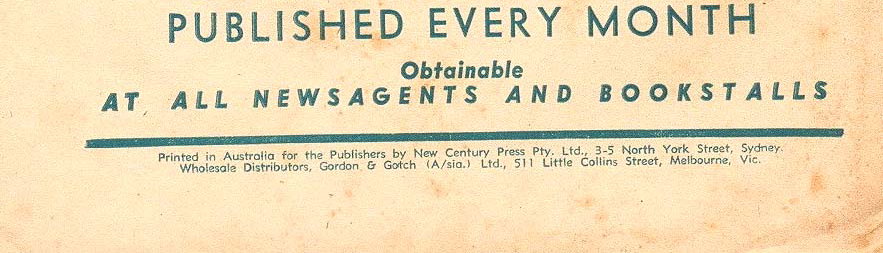 Printed in Australia for the Publishers by New Century Press Pty. Ltd., 3-5 North York Steet, Sydney. Wholesale Distributors, Gordon & Gotch (A/sia) Ltd., 511 Little Collins Street, Melbourne, Vic.