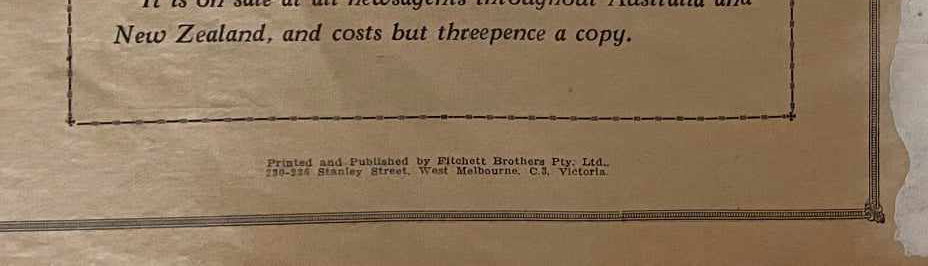 Printed and published by fitchett Brothers Pty. Ltd., 230-236 Stanley Street, West Melbourne, C.3, Victoria.