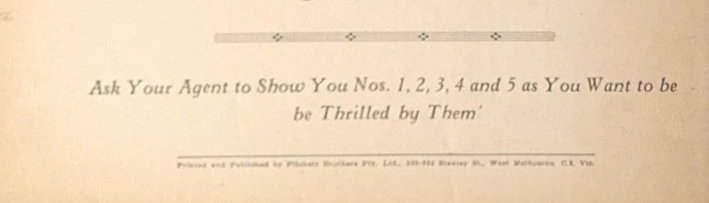 Printed and Published by Fitchett Brothers Pty Ltd., 230-236 Stanley St., West Melbourne, C.3, Vic.