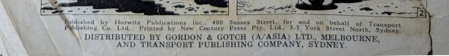 Published by Horwitz Publications Inc., 400 Sussex Street, for and on behalf of Transport Publishing Co. Ltd. Printed by New Century Press Pty. Ltd., 3-5 York Street North, Sydney. Distributed by Gorcon & Gotch (A/asia) Ltd., Melbourne, and Transport Publishing Company, Sydney.