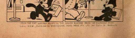 Felix the Cat published monthly by The Junior Readers Press, 148 Castlereagh Street, Sydney, NSW. Distributed by Shakespear Head Press, Pty. Ltd. ?? Collins Street, Melbourne.