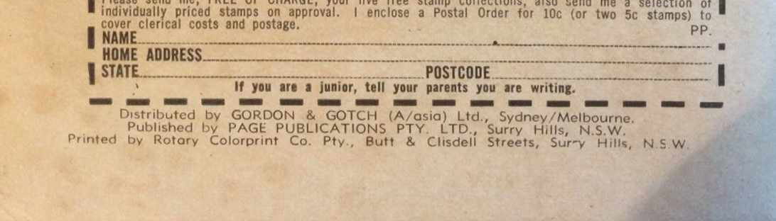 Distributed by Gordon & Gotch (A/asia) Ltd., Sydney/Melbourne. Published by Page Publications Pty. Ltd., Surry Hills, N.S.W. Printed by Rotary Colorprint Co. Pty., Butt & Clisdell Streets, Surry Hills, N.S.W.
