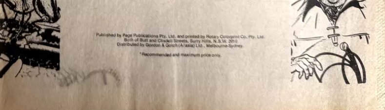 Published by Page Publications Pty. Ltd. and printed by Rotary Colorprint Co. Pty. Ltd. Both of Butt and Clisdell Streets, Surry Hills, N.S.W. 2010. Distributed by Gordon & gotch (A/asia) Ltd., Melbourne-Sydney.