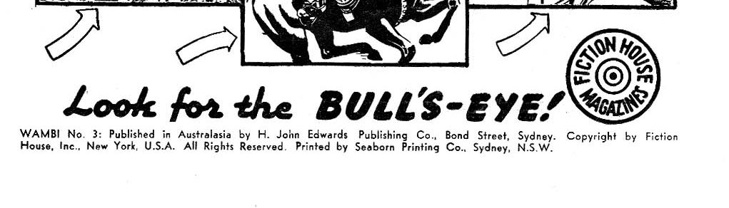 WAMBI No. 3. Published in Australia by H. John Edwards Publishing Co., Bond Street, Sydney. Copyright by Fiction House, Inc., New york, U.S.A. All Rights Reserved. Printed by Seaborn Printing Co., Sydney, N.S.W.