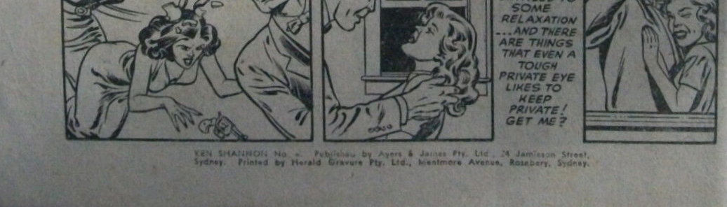 Ken Shannon No. 6. Published by Ayers & James Pty. Ltd., 24 Jamieson Street, Sydney. Printed by Herald Gravure Pty. Ltd., Mentmore Avenue, Rosebery, Sydney.