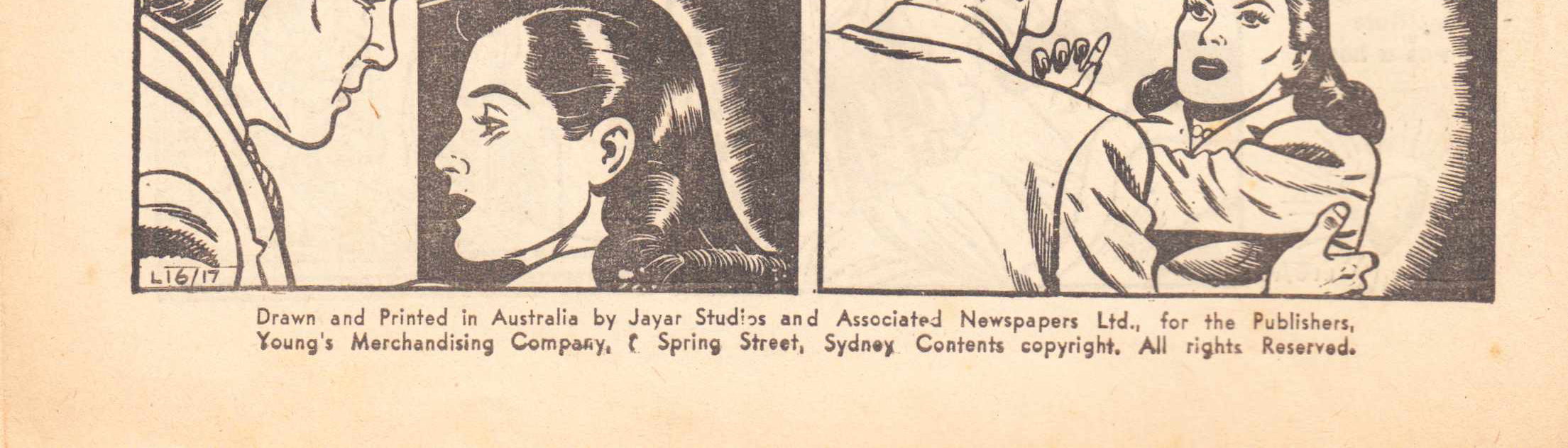 Drawn and printed in Australia by Jayar Studios and Associated Newspapers Ltd., for the publishers, Young's Merchandising Company, 8 Spring Street, Sydney. Contents copyright. All rights reserved. Distributed throughout Australia by Gordon & Gotch (A/sia) Ltd. All names used throughout are fictitious and do not refer to any living person.