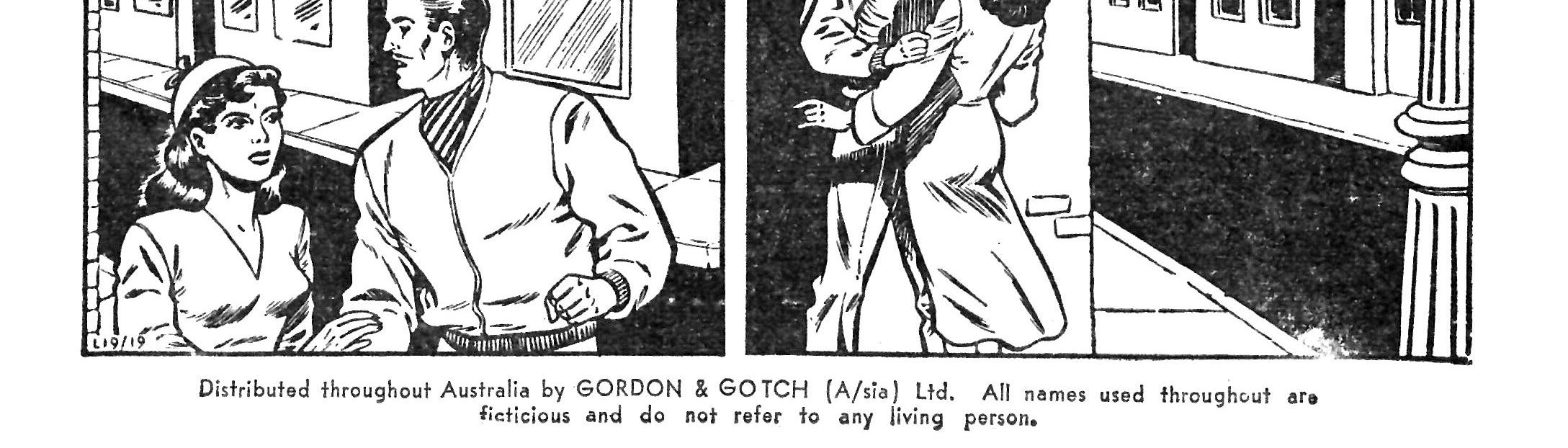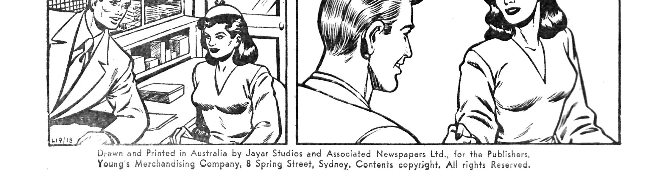 Drawn and printed in Australia by Jayar Studios and Associated Newspapers Ltd., for the publishers Young's Merchandising Company, 8 Spring Street, Sydney. Contents copyright. All rights reserved. Distributed throughtout Australia by Gordon & Gotch (A/sia) Ltd. All names used throughout are fictitious and do not refer to any living person.