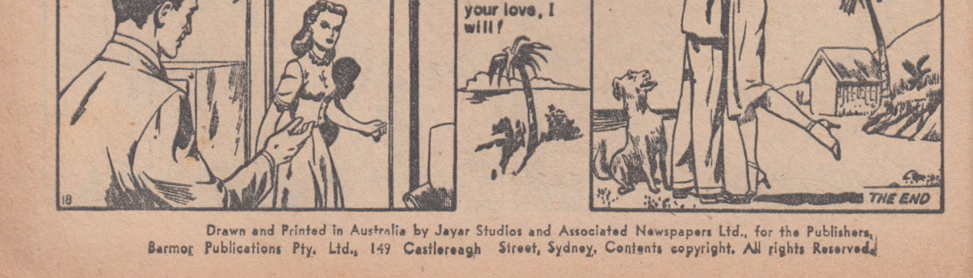 Drawn and printed in Australia by Jayar Studios and Associated Newspapers Ltd., for the Publishers, Barmor Publications Pty. Ltd., 149 Castlereagh Street, Sydney. Contents copyright. All rights reserved. Distributed throughout Australia by Gordon & Gotch (A/sia) Ltd. All names used throughout are fictitious and do not refer to any living person.