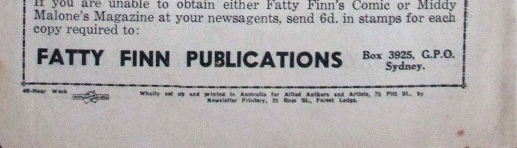Wholly set up and printed in Australia for Allied authors and Artists, 75 Pitt St., by Newsletter Printery, 21 Ross St., Forest Lodge.