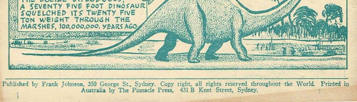 Published by Frank Johnson, 350 George St., Sydney. Copy right, all rights reserved throughout the world. Printed in Australia by The Pinacle Press, 431 B Kent Street, Sydney.