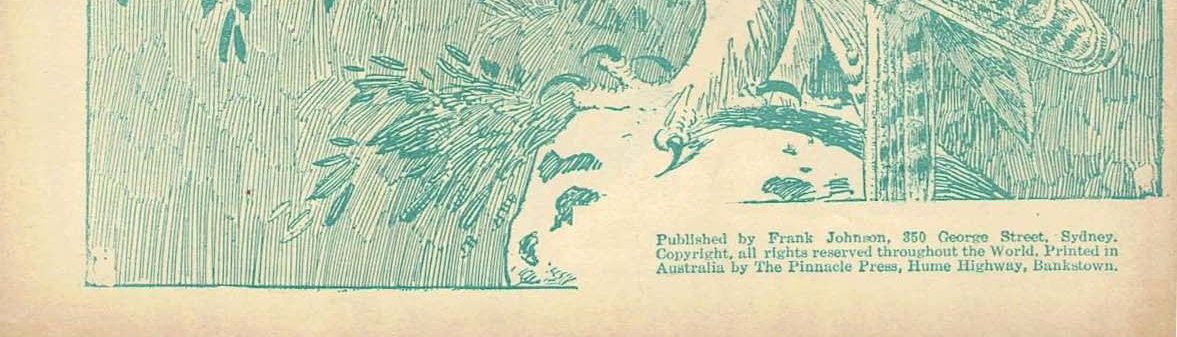 Published by Frank Johnson, 350 George Street, Sydney. Copyright, all rights reserved throughout the world. Printed in Australia by The Pinnacle Press, Hume Highway, Bankstown.