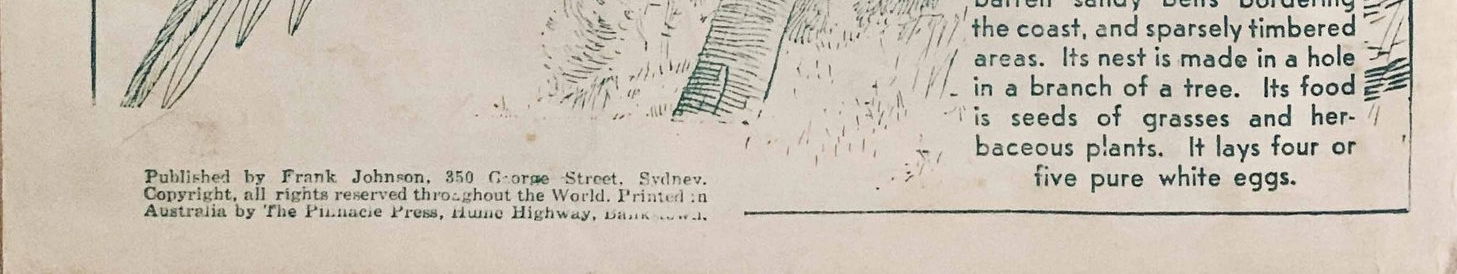 Published by Frank Johnson, 350 George Street, Sydney. Copyright, all rights reserved throughout the world. Printed in Australia by The Pinnacle Press, Hume Highway, Bankstown.