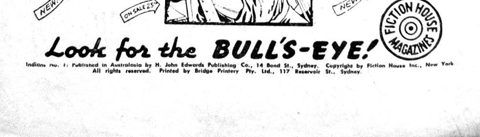 Indians No. 1: Published in Australasia by H. John Edwards Publishign Co., 14 Bond St., Sydney. Copyright by Fiction House Inc., New York. All rights reserved. Printed by Bridge Printery Pty. Ltd., 117 Reservoir St., Sydney.