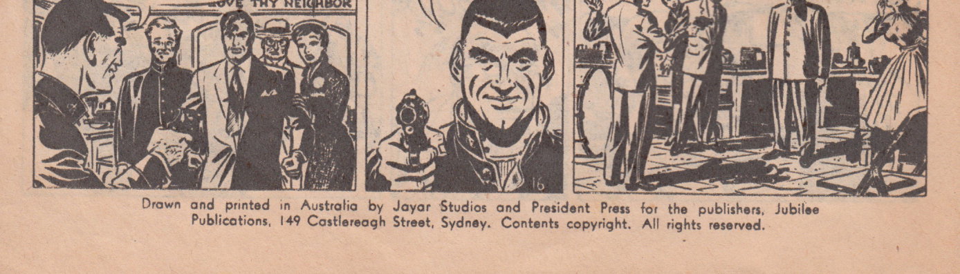 Draw and printed in Australia by Jayar Studios and President Press for the publishers, Jubilee Publications, 149 Castlereagh Street, Sydney. Contents copyright. All rights reserved. Distributed throughout Australia by Gordon & Gotch (A/sia) Ltd. All names used throughout are fictitious and do not refer to any living person.
