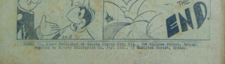 Corky No. 6--Published by Apache Comics Pty. Ltd., 144 William Street, Sydney. Printed by Rotary Colorprint Co. Pty. Ltd., 15 Hamilton Street, Sydney.