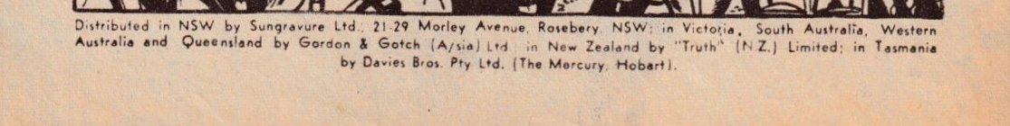 Drawn and printed in Australia by Jayar Studios and Sungravure Ltd. for the publishers. The Red Circle Press Ltd, 149 Castlereagh St, Sydney. Contents copyright. All rights reserved. Distributed in NSW by Sungravure Ltd, 21-29 Morley Ave, Rosebery, NSW, Australia: in Victoria, South Australia, Western Australia, and Queensland by Gordon & Gotch (A/sia) Ltd; in New Zealand by Truth (NZ) Limited; in Tasmania by Davies Bros. Pty Ltd (The Mercury, Hobart).
