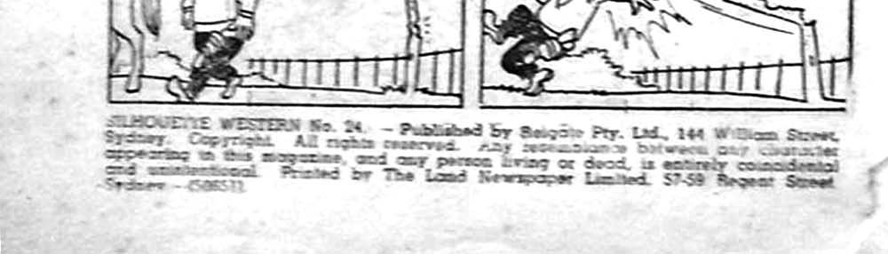 Silhouette War Stories No. 2. Published by Reigate Pty. Ltd., 144 William Street, Sydney. Copyright. All rights reserved. Any resemblance between any character appearing in this magazine, and any person living or dead, is entirely coincidental and unintentional. Printed by The Land Newspaper Limited, 57-59 Regent Street, Sydney -- (50502) Distributed by Atlas Publishing and Distributing Company Limited, London; Gordon and Gotch (A'sia) Limited, Melbourne; Marketing Services (N.Z.) Ltd., New Zealand.