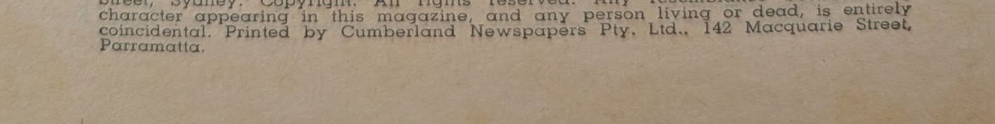 Silhouette War Stories No. 17.--Published by Reigate Pty. Ltd., 144 William Street, Sydney. Copyright. All rights reserved. Any resemblance between any character appearing in this magazine, and any person living or dead, is entirely coincidental. Printed by Cumberland Newspapers Pty. Ltd., 142 Macquarie Street, Parramatta.